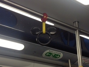 Getting around Hong Kong is a breeze. The city has an excellent metro and bus network. The metro is especially clean, efficient, and a very smooth ride. You feel like you’re gliding between stations. Our journey to Disneyland only took about 40 minutes, door to door. The last section was on a special Disney train, with cute Mickey Mouse shaped windows and hand rings: