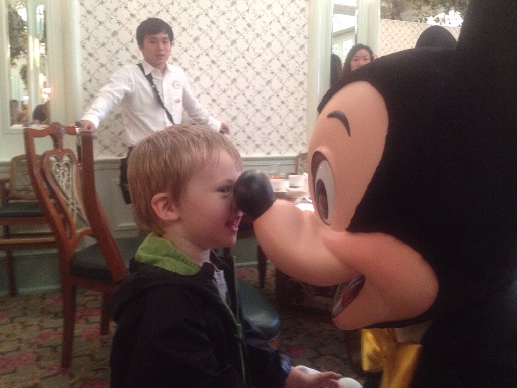 DW had pre-booked us in to a 9.30am character breakfast at the main Disney hotel. The food was nice enough, but of course the main draw is to meet some of your favourite characters up close and personal. As you might imagine, this was a big hit with The Boy: