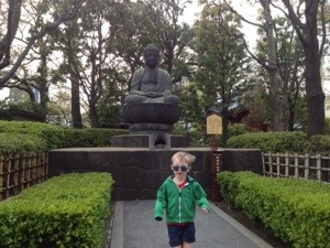 One of the temples had a small zen rock/gravel garden. Unlike the other specimens of these we’d seen in Kyoto, this one didn’t have a fence around it. While I was taking a photo of part of it, The Boy decided to run across another part. The whole point of these gardens is to facilitate meditation through studying the patterns – so a three year old stomping across these intricate designs is definitely not ok. Luckily, I managed to grab hold of him before he started digging into one of the mounds. That would probably have been a deportation offence.