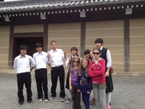 We had a guide booked for our second day in Kyoto, so for our first day we set off by ourselves. We had tickets booked for one of the geisha dances in the afternoon (these only occur on certain dates each year, but luckily April is one of the main times), so in the morning we visited Nijo castle. This was built 400 years ago and is right in the middle of the city. One of the things it is famous for is its “nightingale floors.” The shogun was worried about others sneaking up on him to kill him, so he had the hall floors designed such that they squeak when walked on, in a manner that sounds like nightingales singing. It’s quite something to hear them.