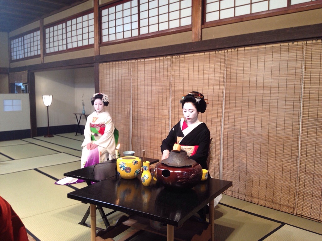 Before the performance itself, we got to attend two of the geishas carrying out the traditional tea ceremony. This involved being herded into a room with 60 others to watch said geishas do their thing: