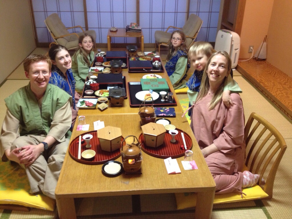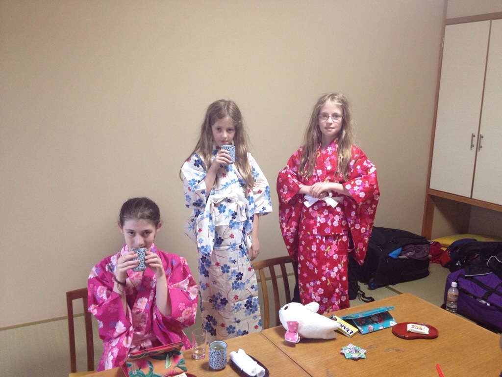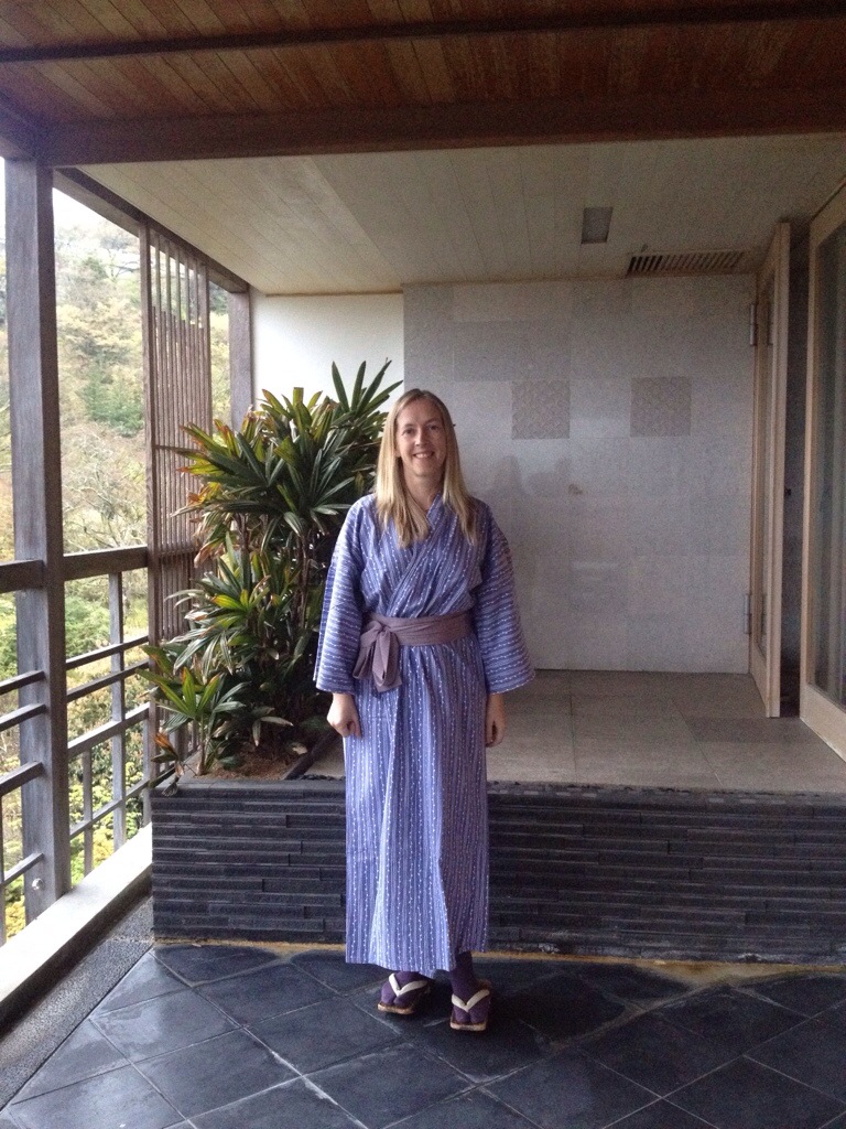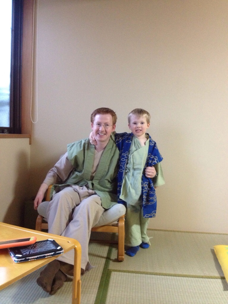 After my brisk walk, I rejoined the clan back at the ryokan. As I mentioned, a ryokan is a traditional Japanese guesthouse. By traditional, I mean the whole gig. You change out of your normal clothes to relax in traditional garb: