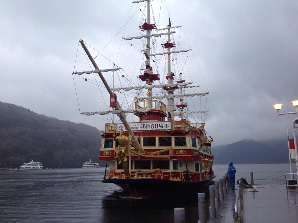 Then you take another gondola over the top of this mountain and down to Lake Ashi on the other side. Here, you board a “pirate” ship to take you across the lake. You can then take a bus to complete the loop, or just re-trace your steps. We did the latter.
