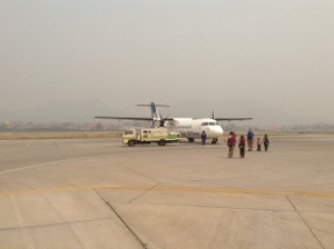 We travelled down from Luang Prabang to Siem Reap on Thursday, 20th March. This was a “direct” flight, although in fact it had a stop along the way at a town in southern Laos called Pakse. The airport at Pakse made Luang Prabang’s look positively cosmopolitan. Pakse’s had only parking space for two aircraft at any one time. We were on a propellor plane operated by Lao Airlines. DW took a photo of us boarding at Luang Prabang for posterity: