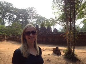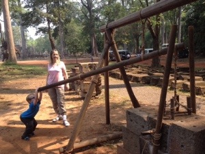 But enough about the hotel. Everyone comes here for temples, not swimming pools! Siem Reap is close to the temples complex at Angkor. This was the seat of power of the Khmer empire from roughly 800-1400AD. We noticed on the flight in that the land around here is incredibly flat (a big contrast to the mountains of northern Laos). Extensive flat land, plus good irrigation techniques, meant an area that could generate three rice crops per year. That, plus good military leadership, created an environment that allowed the Khmer empire to flourish. At its height, the capital city here had a population of about one million. This was the largest city in the pre-industrial world – London had a population of 50,000 at this time for example.