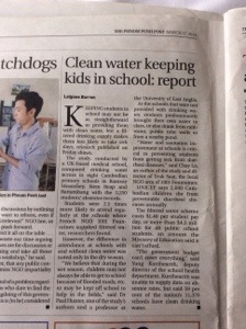 This article covered some research by UK academics on attendance records between Cambodian primary schools with drinking water (about 60% of the total) and those without (the other 40%). Not surprisingly, attendance was much better in the former, mainly because of less sick absences. In schools with no running water, kids have no choice but to resort to pond water when thirsty. The government here has costed out what it would take to provide clean water for all schools here: about US$4 million per year, but also has said it cannot afford that so has no plans to do anything about it.