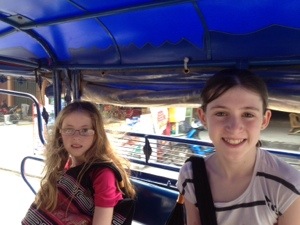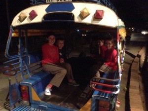 After we had done our best to settle in, we decided to head into town for dinner (the hotel is a 5 minute drive outside). The local mode of group transport is the tuk-tuk (as is the case for most of the region). A tuk-tuk is basically a souped up motorbike attached to a covered trailer with benches. This was our first ever tuk-tuk: