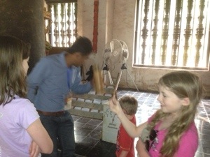 There was a beautiful carving there of the story of the two monkeys. This tells the story of two monkey brothers who constantly fought with each other for no real reason. Eventually, one of the two hired a human to kill his brother (by bow and arrow). In exchange, he agreed to become the human’s slave forever. It’s a great parable about the futility of petty arguments and the great damage they can cause. Not a bad lesson for the kids to learn! In the photo, you can see the two brothers arguing in the centre, the human shooting his bow on the right and, on the left, one brother dying from the arrow while the other looks on.