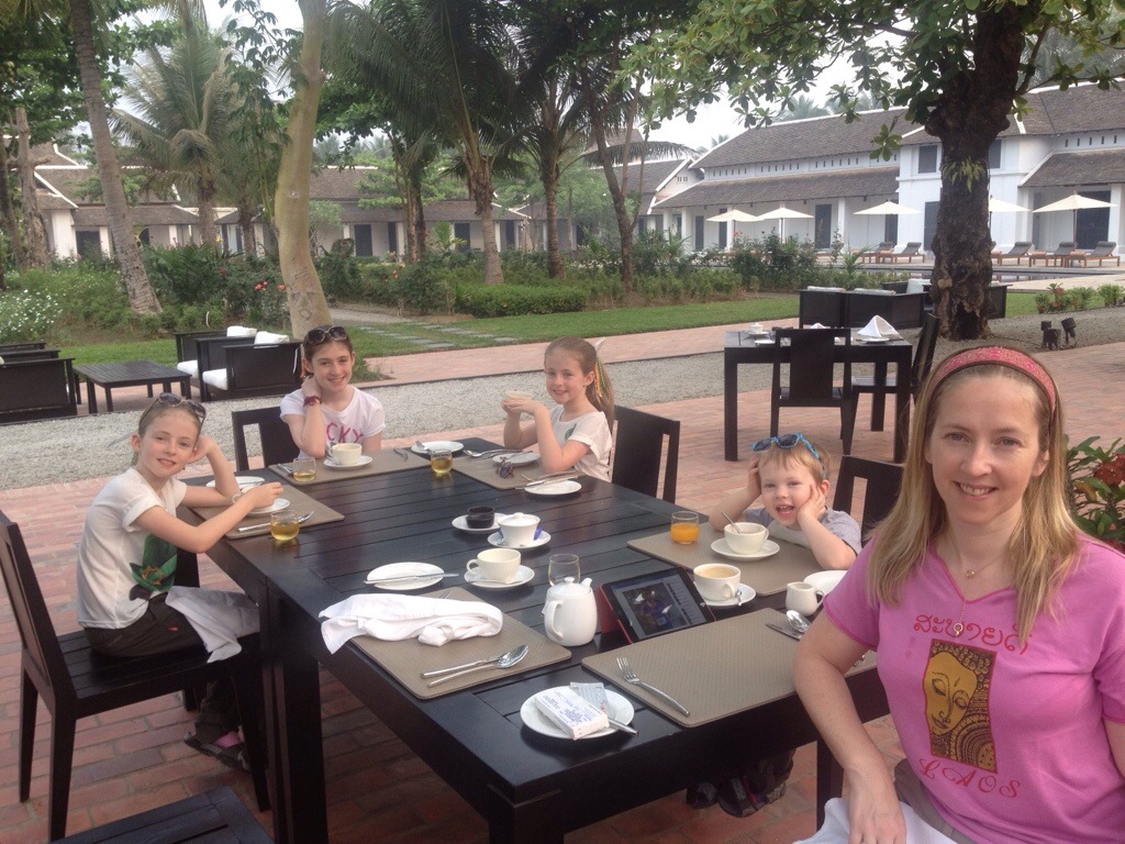 Our travel day here went without a hitch. We arrived into a very small airport – think Kerry Farranfore. The entry process was a bit of a pain. We were sitting about halfway down the plane, but between Thing One not actually being ready to get off when it was our turn, and The Boy wanting to get back on the airplane, we ended up at the very back of the immigration queue. This was our first taste of the different pace here. Laos is a communist country, but open to tourism, so you can just turn up and get a visa on arrival. But it takes a bit of time. We had to queue once to get the actual visa, and then again to gain entry with it. Thankfully, the whole family were fairly chilled so it went smoothly enough, although it took about an hour and a half.