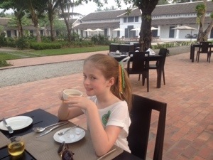 Today was our last day in Luang Prabang. Having missed out on yesterday’s events, I was keen to get one last chance to walk around the town and soak up the atmosphere. Having been on the go for the last few days, DW took the opportunity to have a rest day by the pool. The girls joined me for the walk, The Boy decided to stay with mummy and splash in the pool.