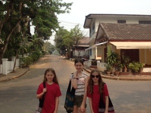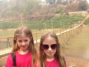 So, Things One and Two got to go to school for a day while here! They even got to join in on one of the classes (many of the texts are in both Laos and English to also help the kids learn English). As you might imagine, they were a big novelty and very popular. Most of the kids had never seen a European before, so to see white twin kids the same age as themselves was unreal for them. Our girls really enjoyed this too.