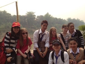 When we crossed back over the bridge, we sat down on a wall for a breather. A local secondary school class happened to walk by as we were sitting there. White folk are reasonably frequent here, but white school kids are not, and twin white blond-haired school kids even less so. All four of the kids have been very popular with locals and Chinese tourists so far. Apparently touching a blond haired boy brings good luck so The Boy is especially popular, but the girls are too. So we weren’t that surprised when the local school kids asked if they could take some photos. We said fine so long as we could too! Several of them couldn’t resist rubbing Eldest Girl’s skin to see if her pale complexion was real, or make-up….